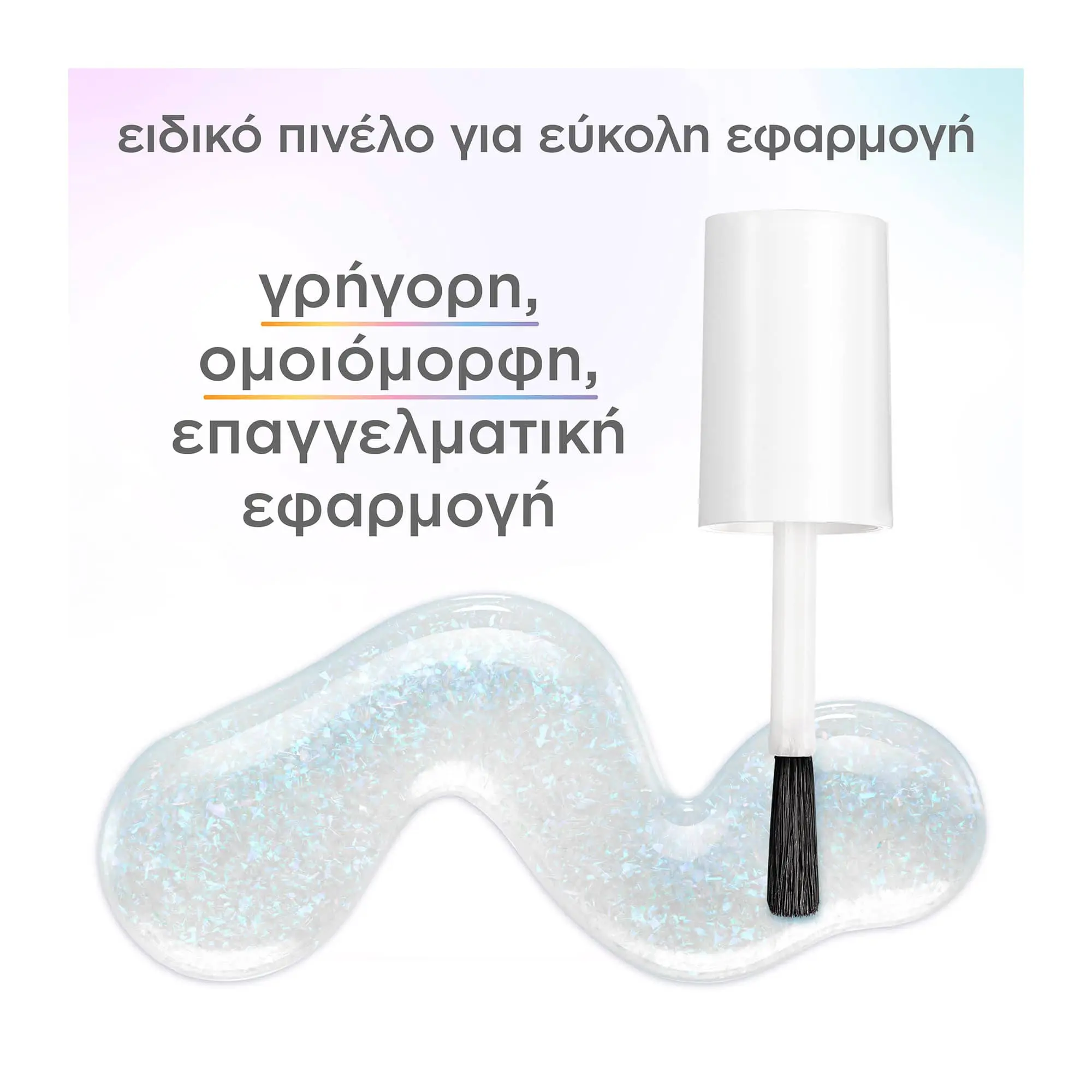 Εφαρμόστε μια στρώση πάνω από άβαφα ή βαμμένα νύχια για ένα διακριτικό αποτέλεσμα ή προσθέστε επιπλέον στρώσεις για να προσαρμόσετε την ένταση.