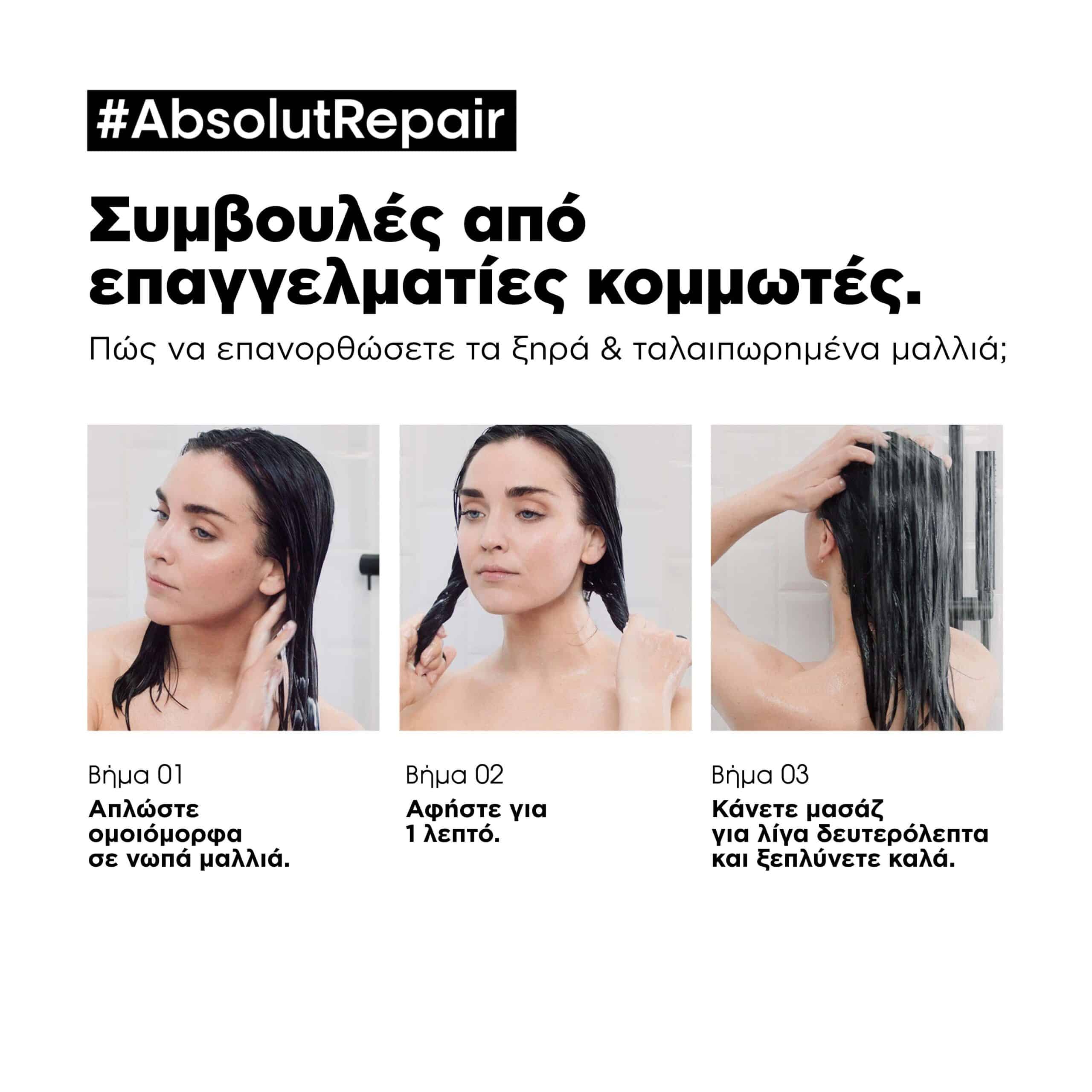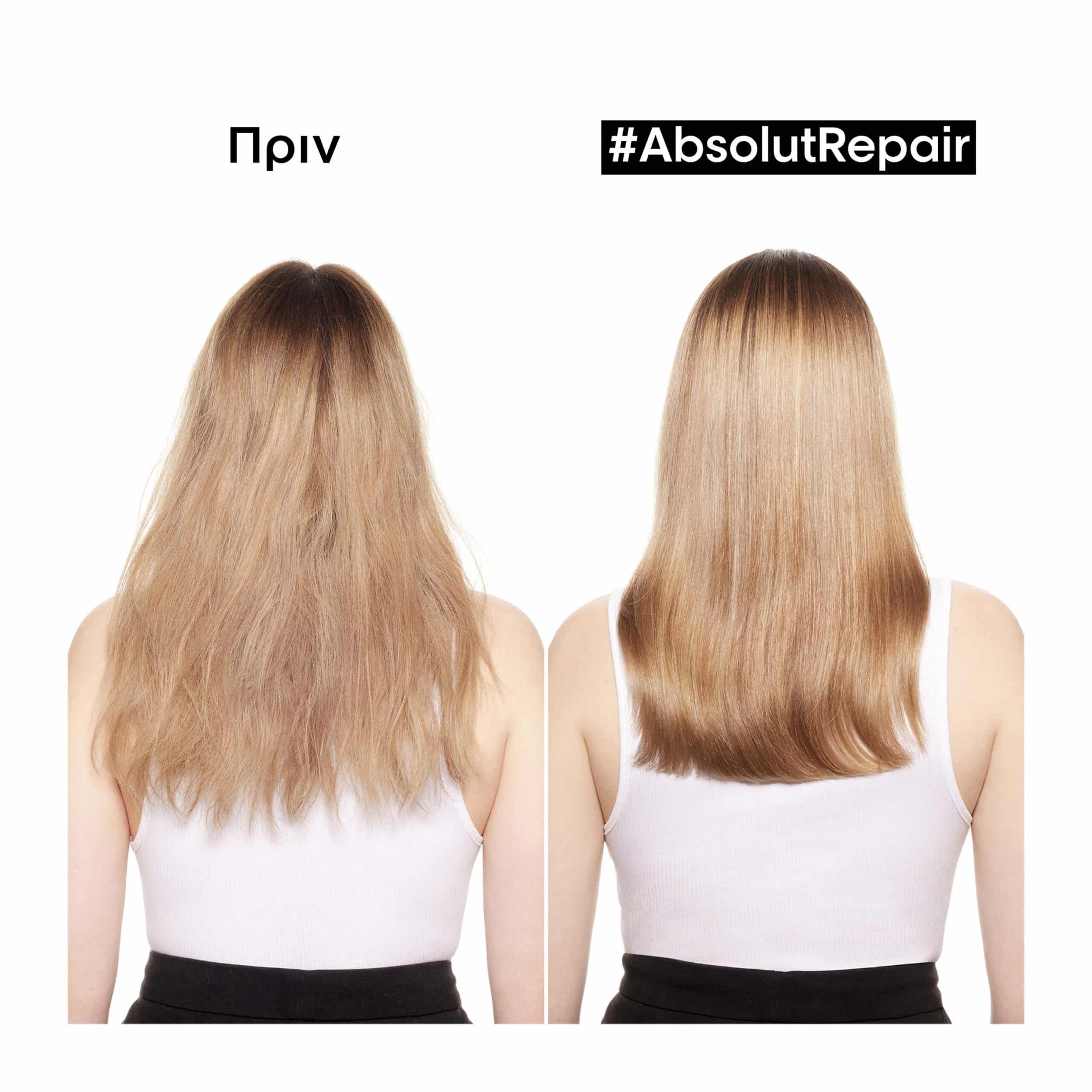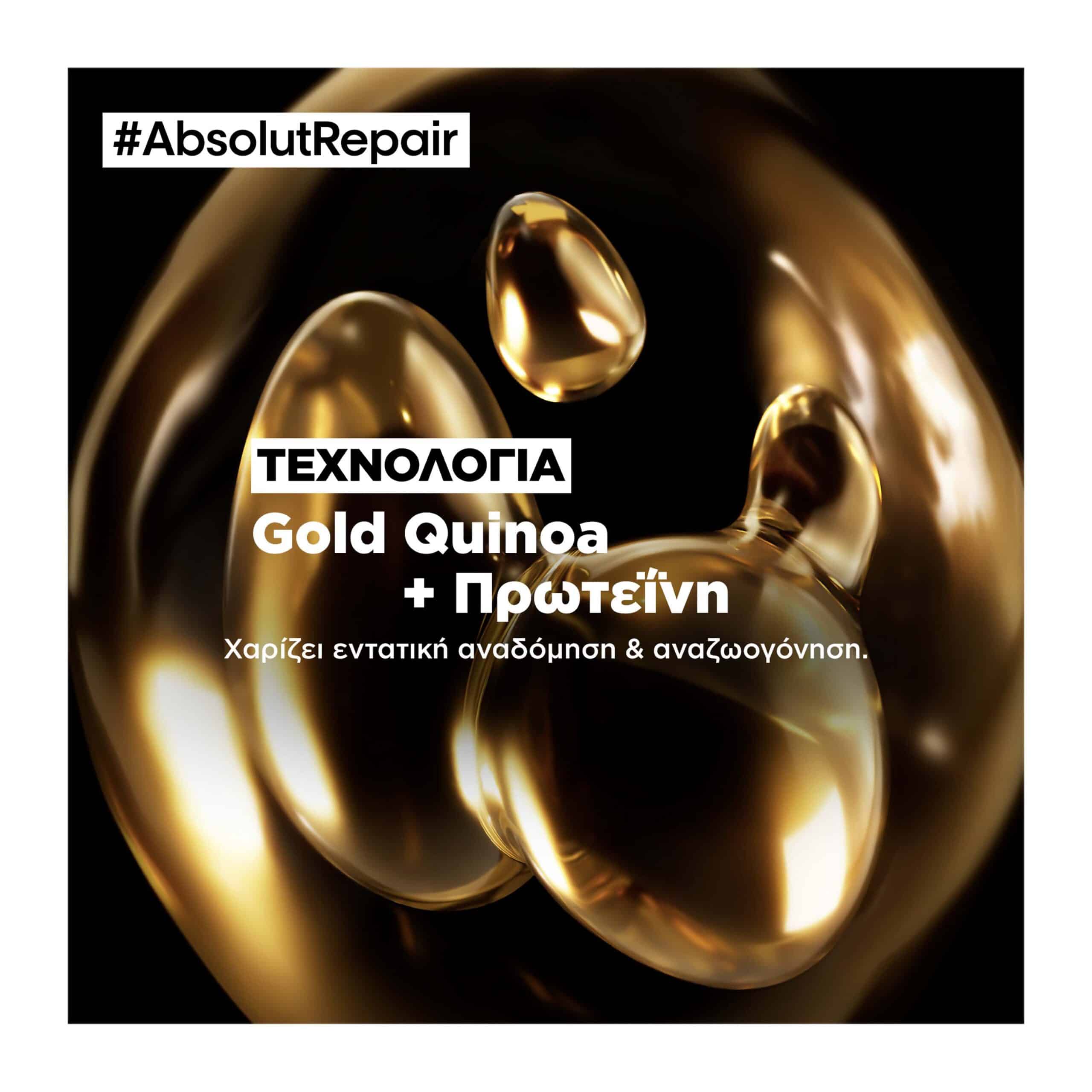 Χάρη στη δύναμη του GOLD QUINOA + της ΠΡΩΤΕΪΝΗΣ, τώρα η Absolut Repair μειώνει τη φθορά στην επιφάνεια της τρίχας κατά 77%* και προσφέρει 7x περισσότερη λάμψη**, χαρίζοντας στα μαλλιά ανάλαφρο άγγιγμα.