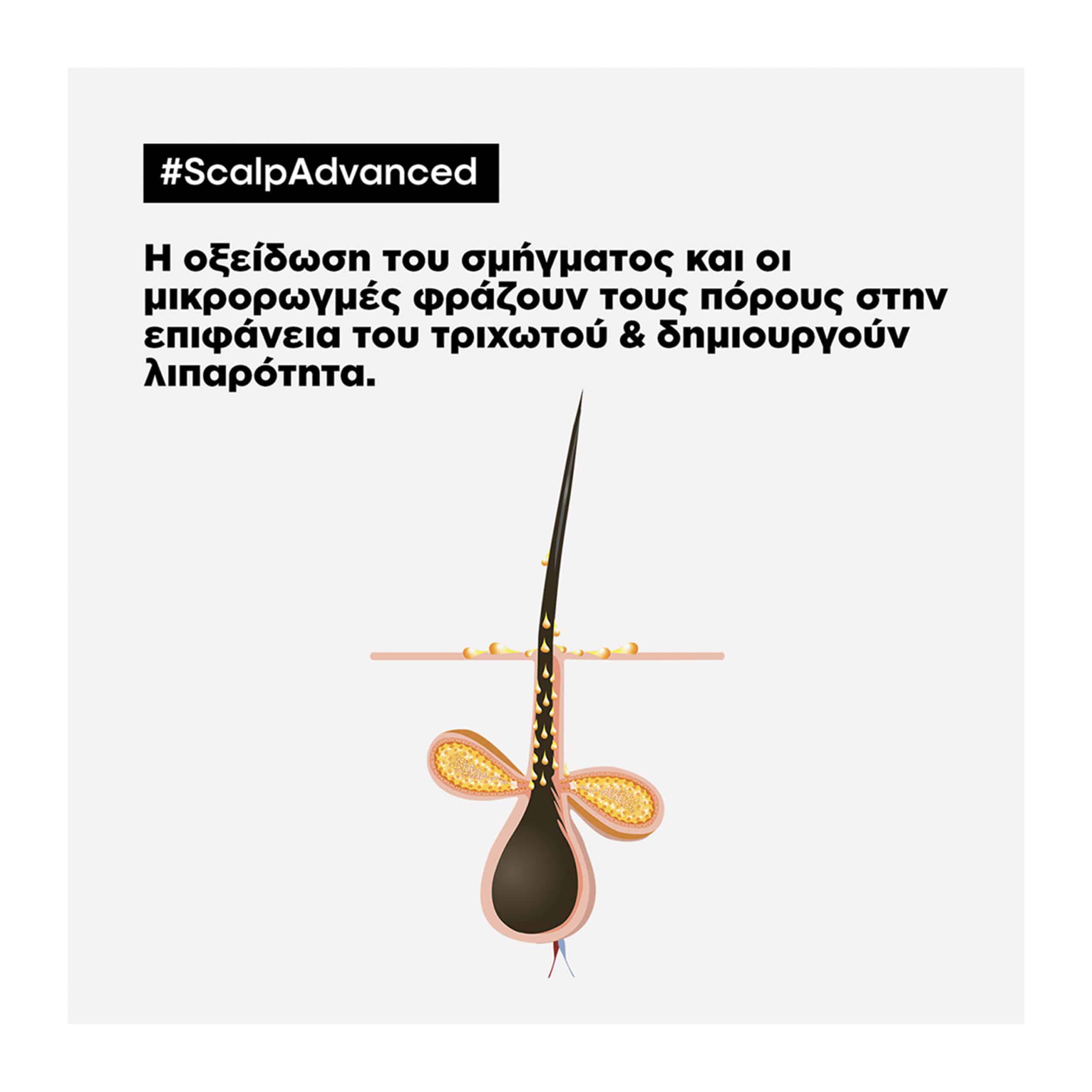 ΑΠΟΤΕΛΕΣΜΑΤΑ & ΟΦΕΛΗ: Η Scalp Advanced Anti-Oiliness 2-in-1 Deep Purifier Clay είναι ειδικά σχεδιασμένη για το λιπαρό τριχωτό. Αυτή η ευέλικτη μάσκα αργίλου πολλαπλών χρήσεων μπορεί να χρησιμοποιηθεί είτε ως σαμπουάν για απομάκρυνση των καταλοίπων, του ιδρώτα και του σμήγματος, είτε ως μάσκα για βαθιά εξυγίανση. Δίνει ανάλαφρο όγκο στα μαλλιά.