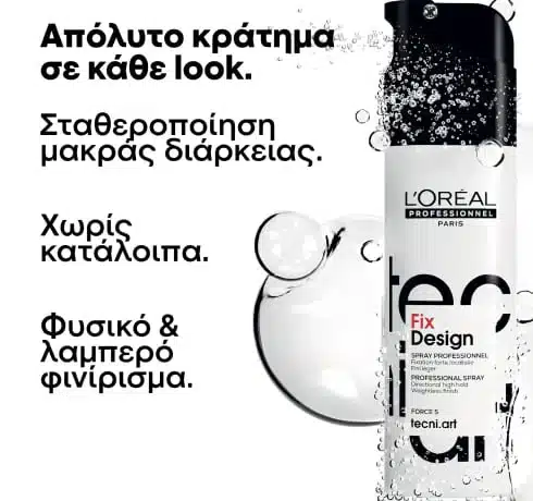 Το Tecni.ART Fix Design της L’Oréal Professionnel είναι ένα σπρέι φιξαρίσματος για όγκο στα μαλλιά με δυνατό κράτημα χωρίς ορατά κατάλοιπα και ένα φυσικό λαμπερό φινίρισμα, ενώ το look σας παραμένει αναλλοίωτο.
