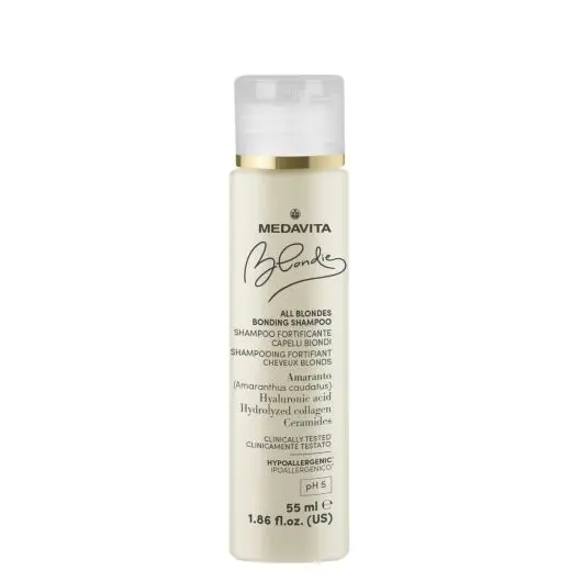 Medavita All Blonde Bonding Shampoo 55ml, ενίσχυσης των δεσμών. Κατάλληλο για όλους τους τύπους ξανθών μαλλιών.