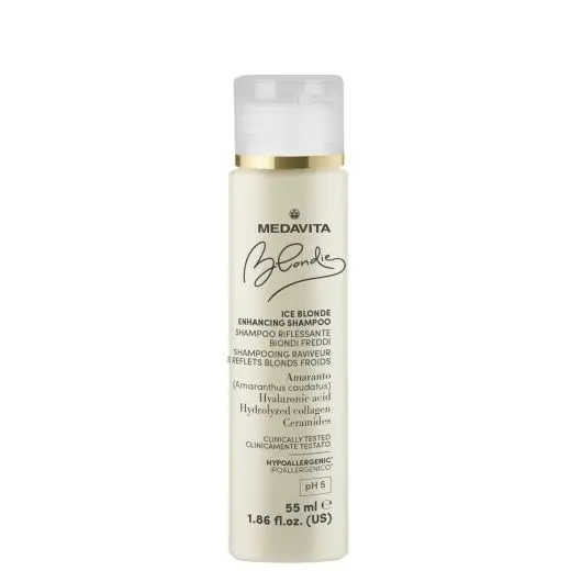 Medavita Ice Blonde Enhancing Shampoo 55ml είναι σαμπουάν ενίσχυσης χρώματος, ιδανικό για όλες τις ψυχρές ξανθές αποχρώσεις.