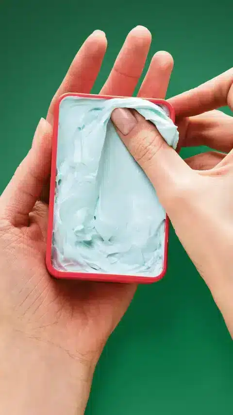 1. Πάρε μικρή ποσότητα στις παλάμες και τρίψε την καλά.